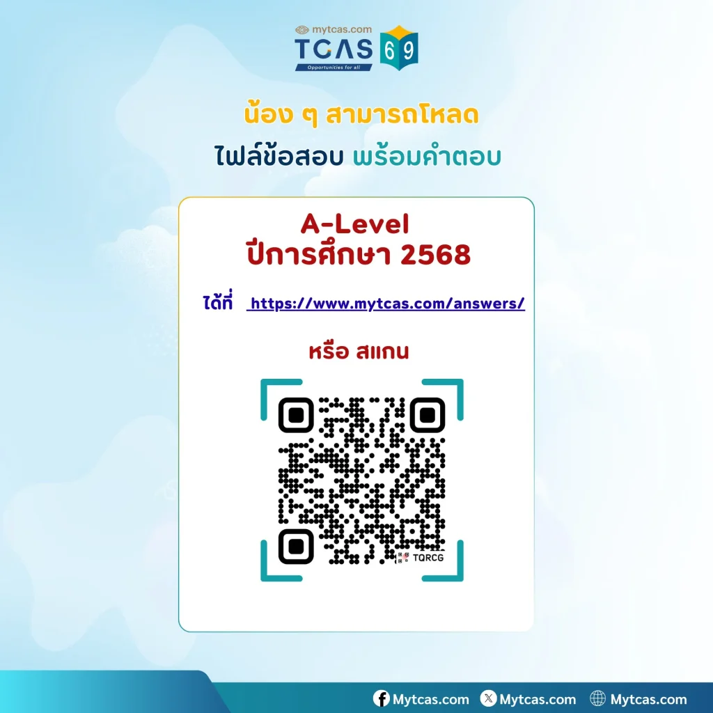 สามารถดาวน์โหลดทั้ง16 วิชาได้แล้ววันนี้ที่: https://www.mytcas.com/answers หรือสแกน QR Code ในรูปภาพได้เลย